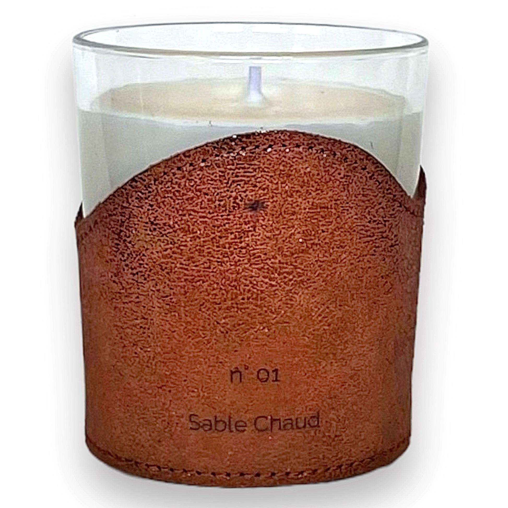 BOUGIE DANS SON ÉTUI DE CUIR Rechargeable - N°01 SABLE CHAUD