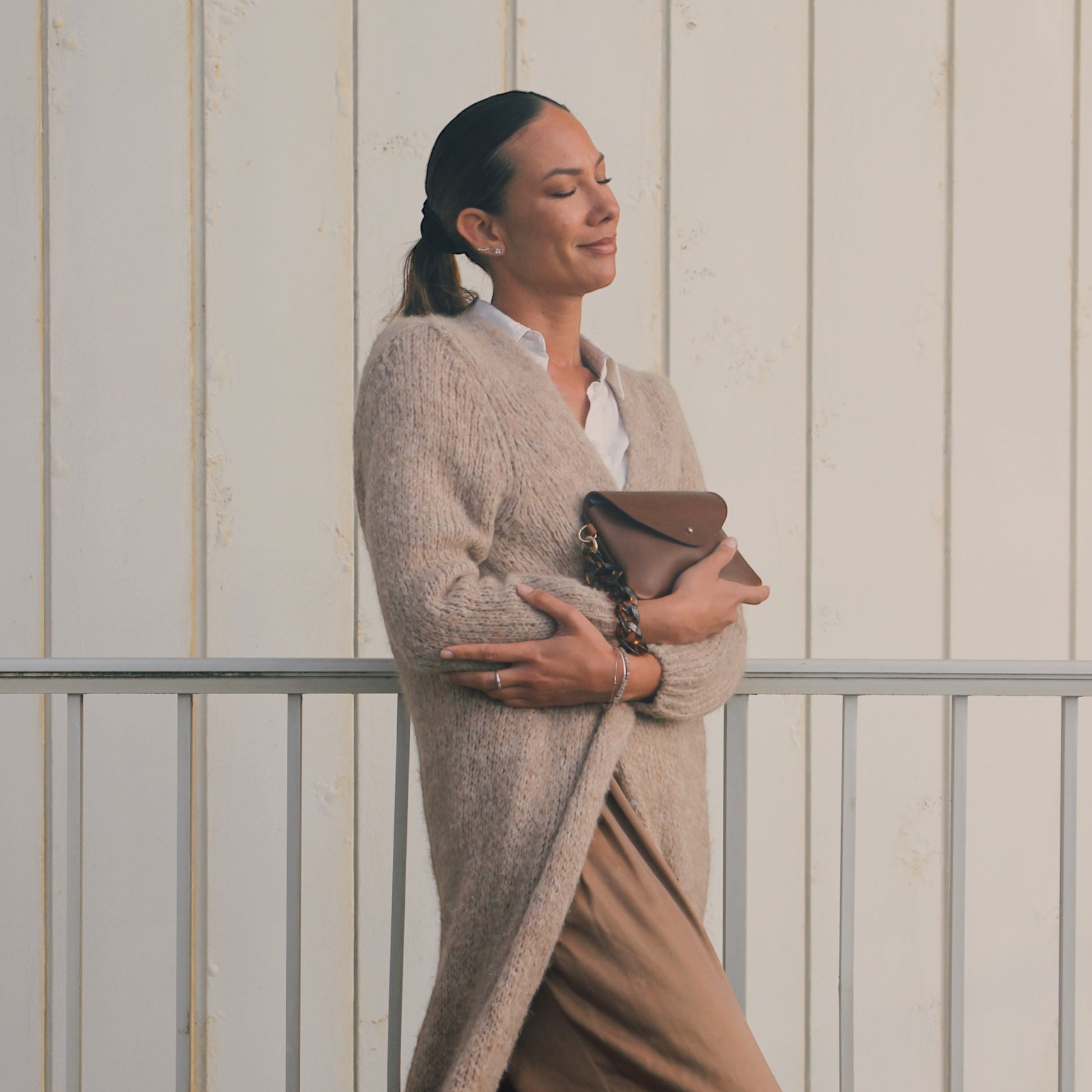 Bolso de piel de becerro marrón, curtiduría francesa Haas.