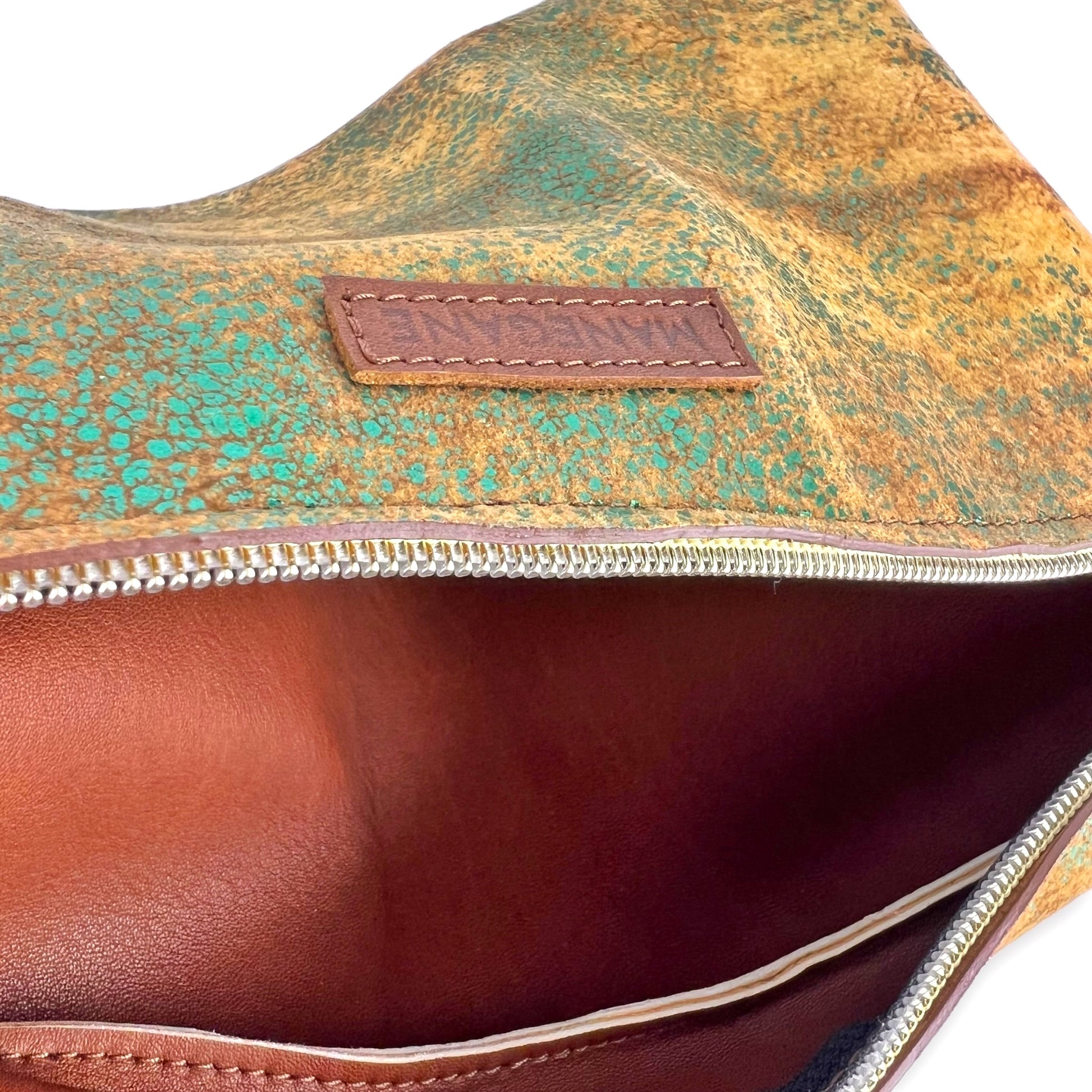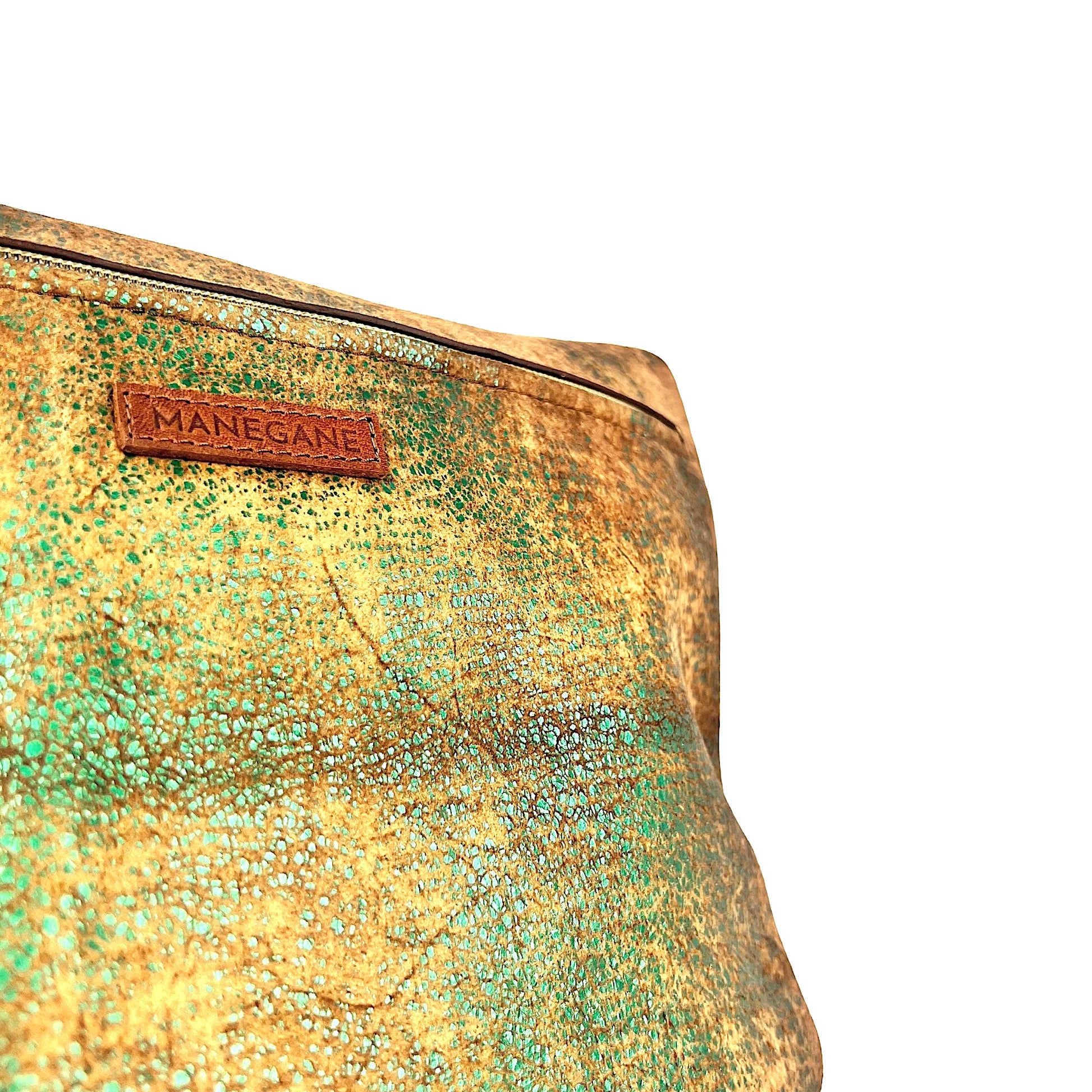 Bolso de piel de cordero metalizada muy suave y ultrasuave, en un color único, con su pulsera y su refinado diseño, destaca por su elegancia y su irresistible flexibilidad.