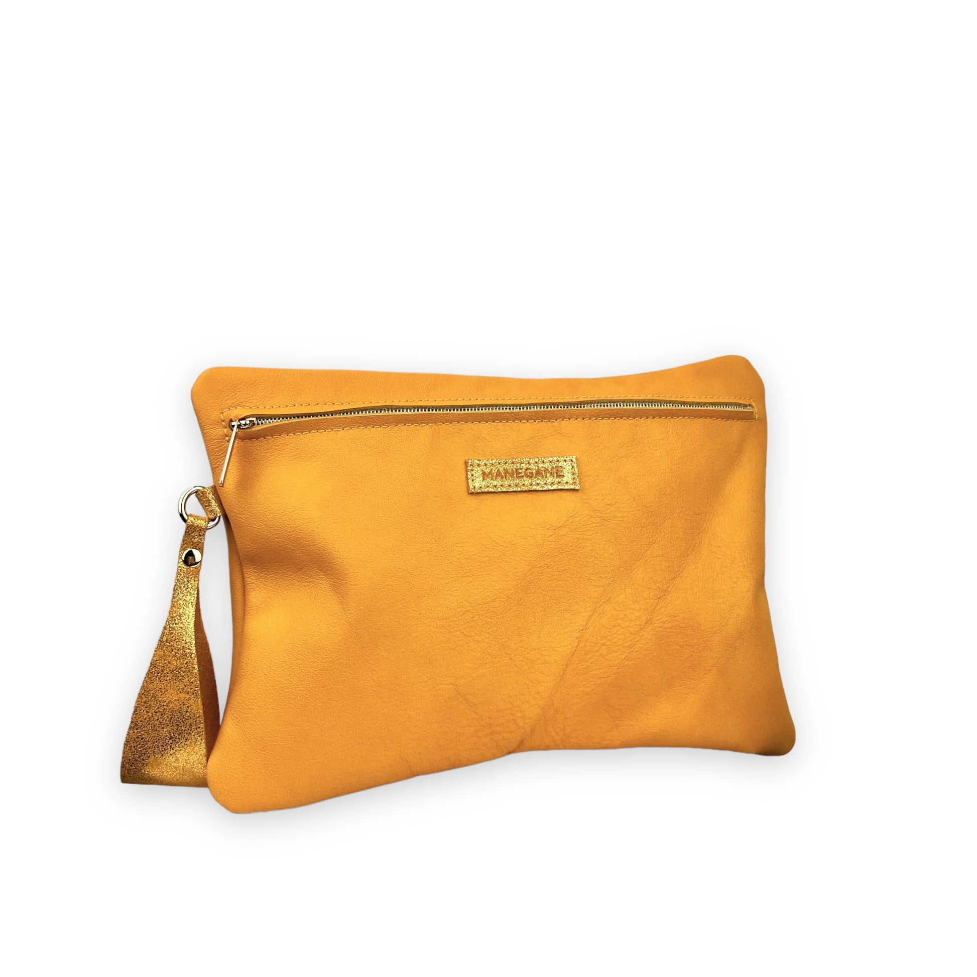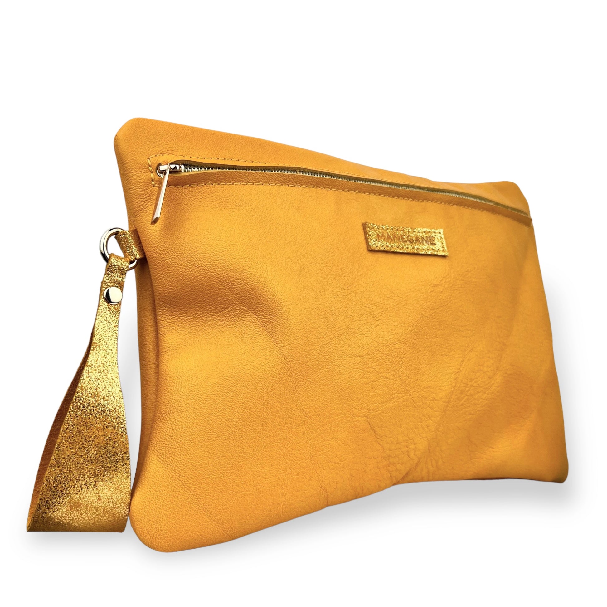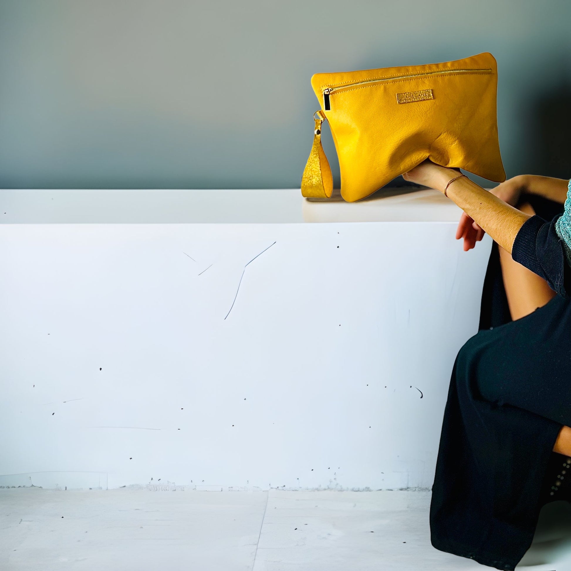 Bolso de piel en un color único, con su pulsera y su diseño refinado, destaca por su elegancia y flexibilidad irresistible.