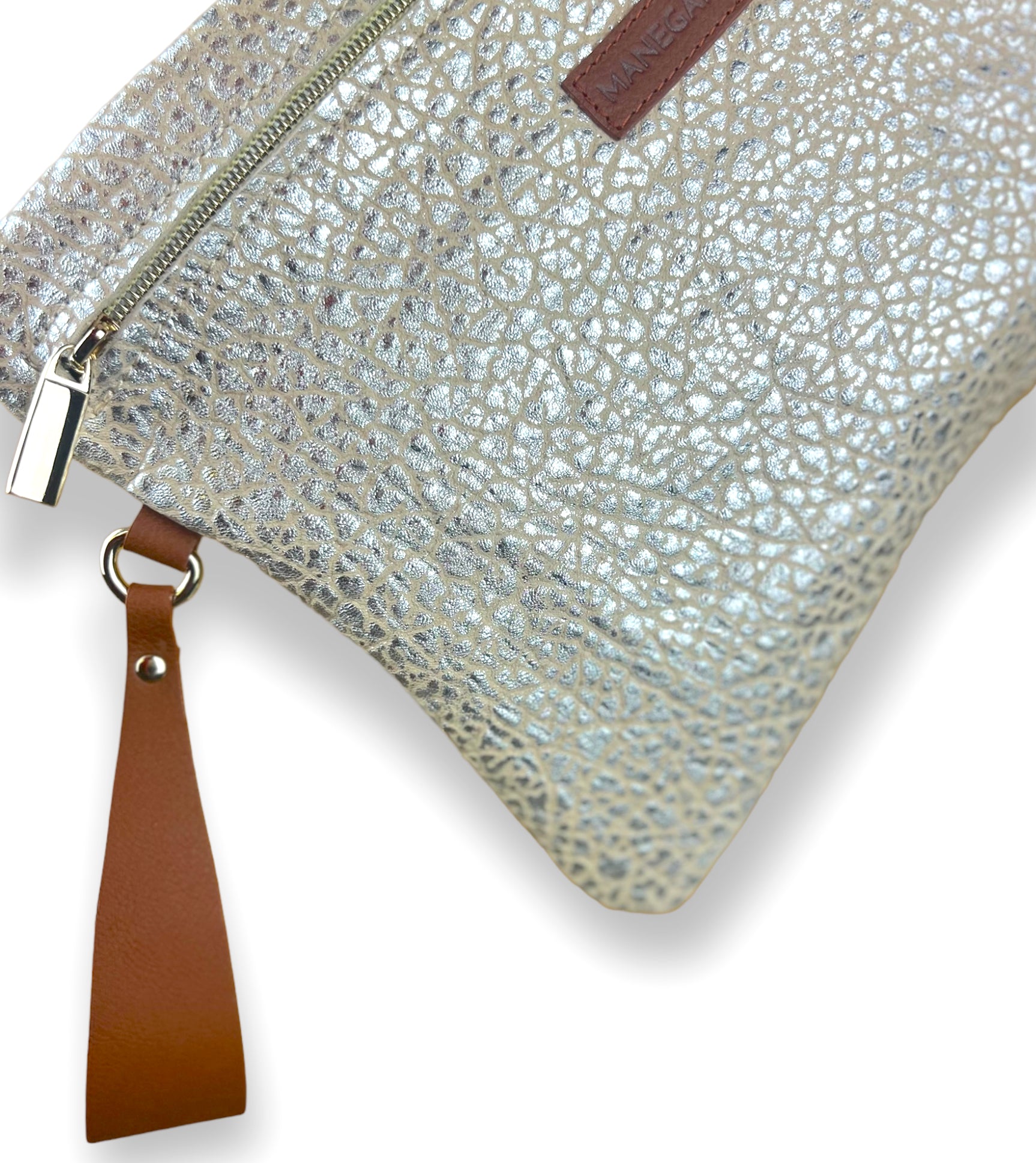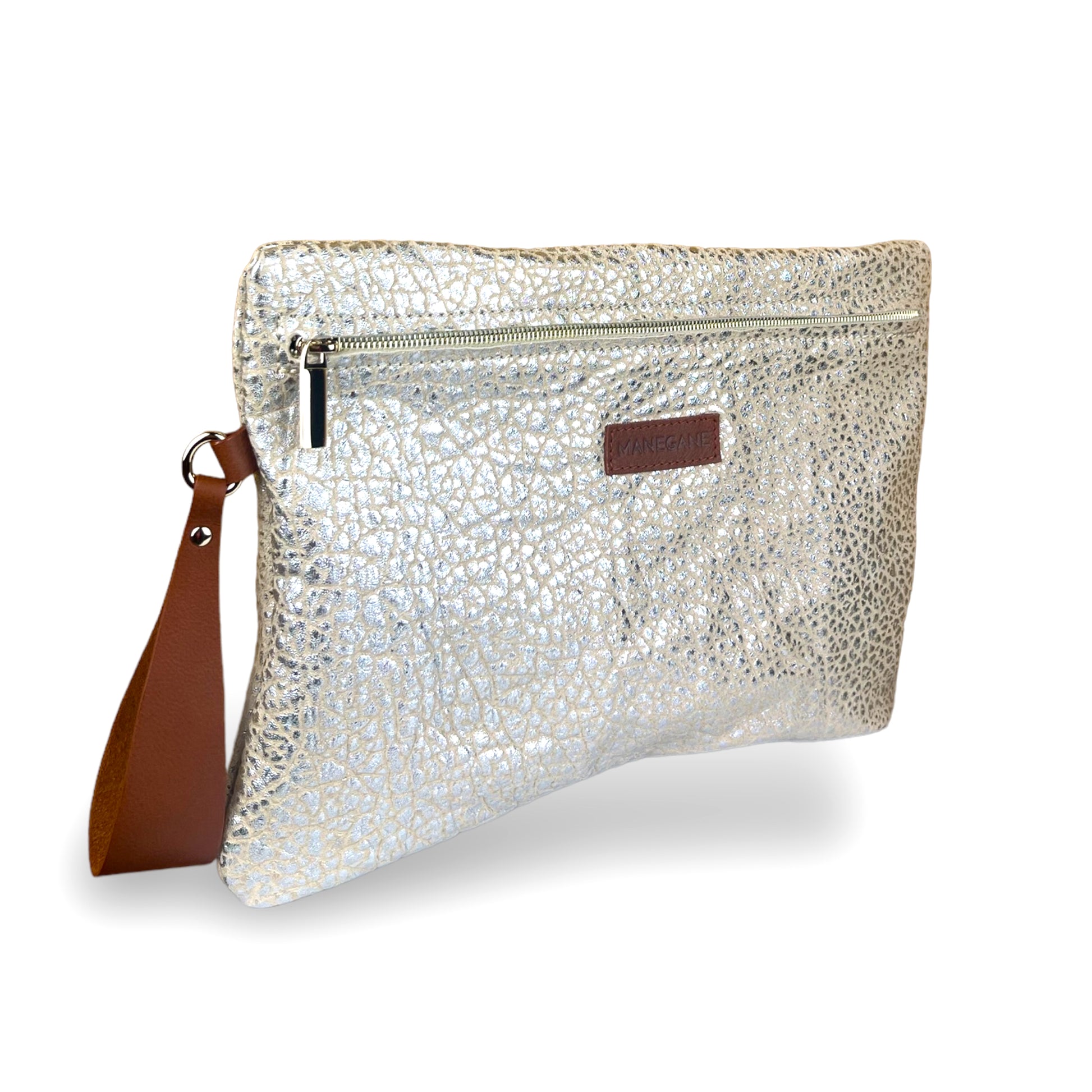 Clutch de piel de cordero burbuja ultrasuave, en un color único, con su pulsera y su elegante diseño, destaca por su elegancia y su irresistible flexibilidad.