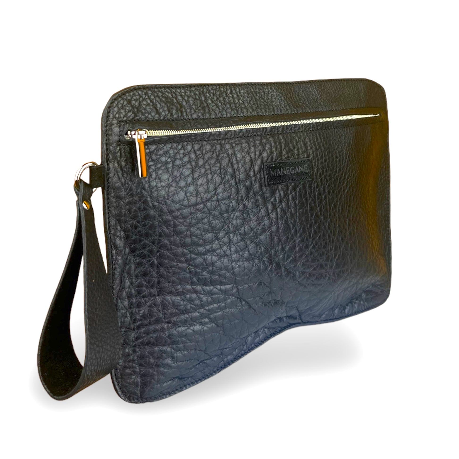 Bolso de piel en un color único, con su pulsera y su diseño refinado, destaca por su elegancia y flexibilidad irresistible.