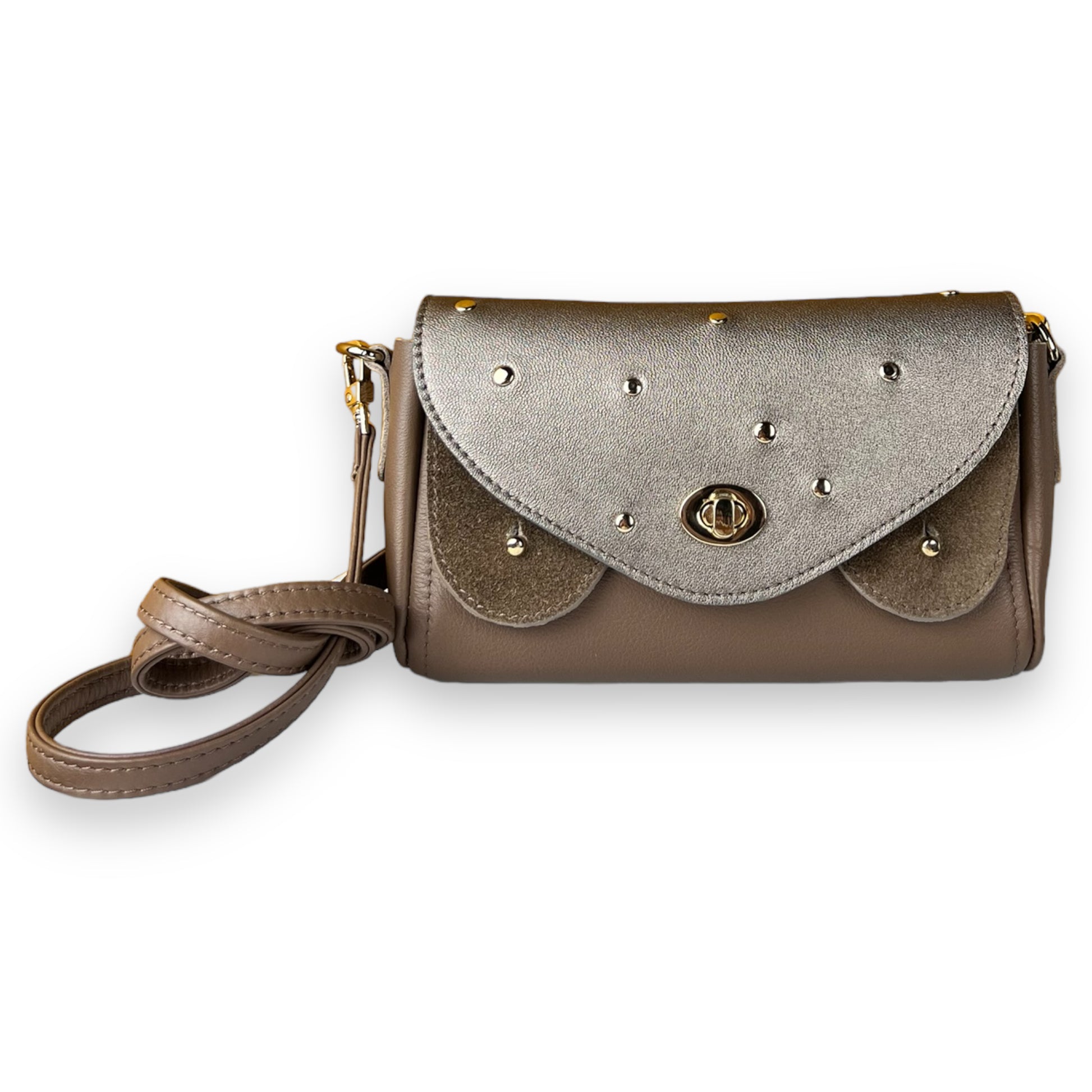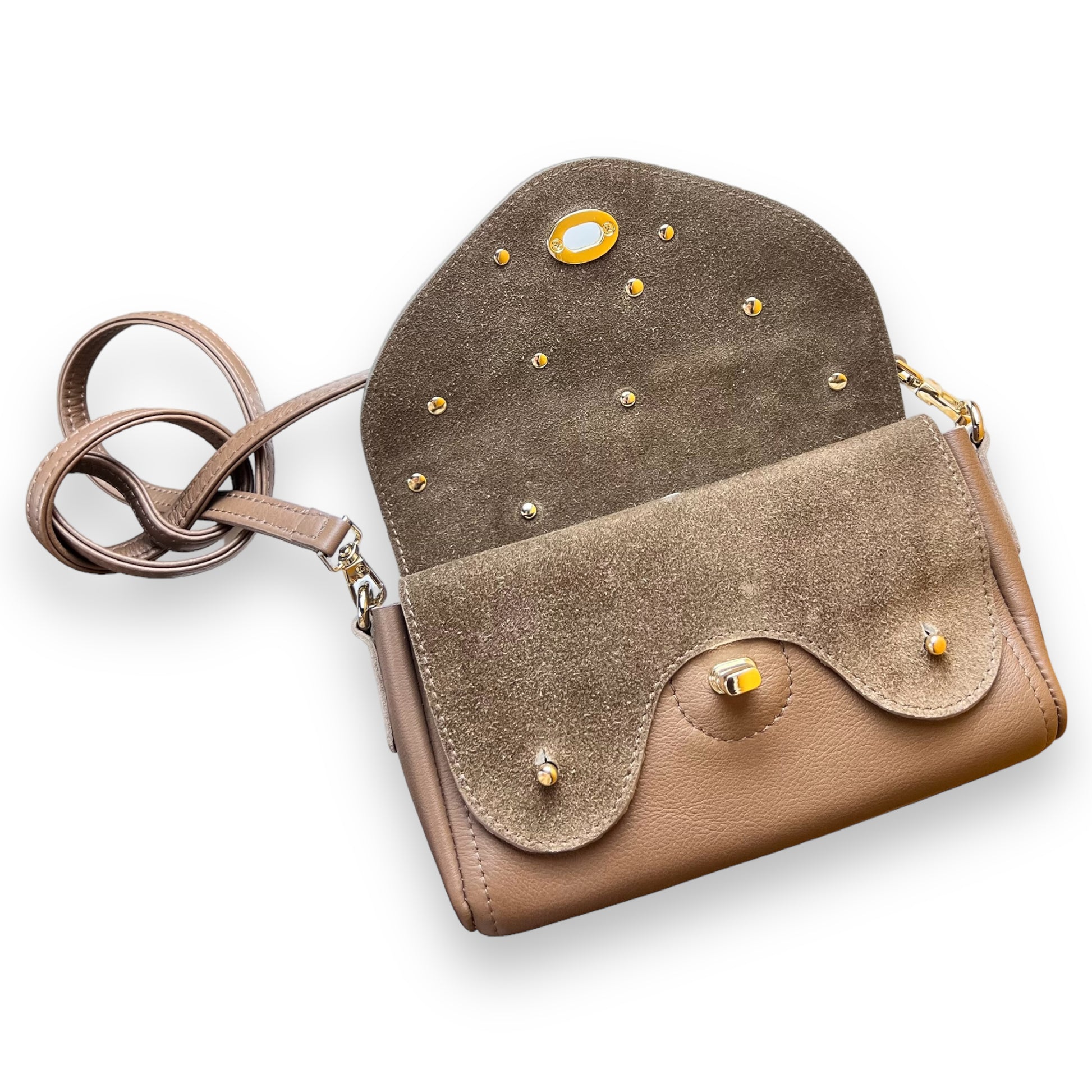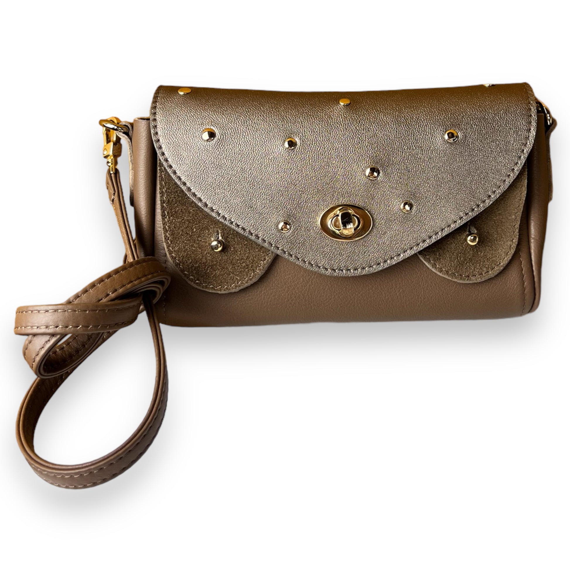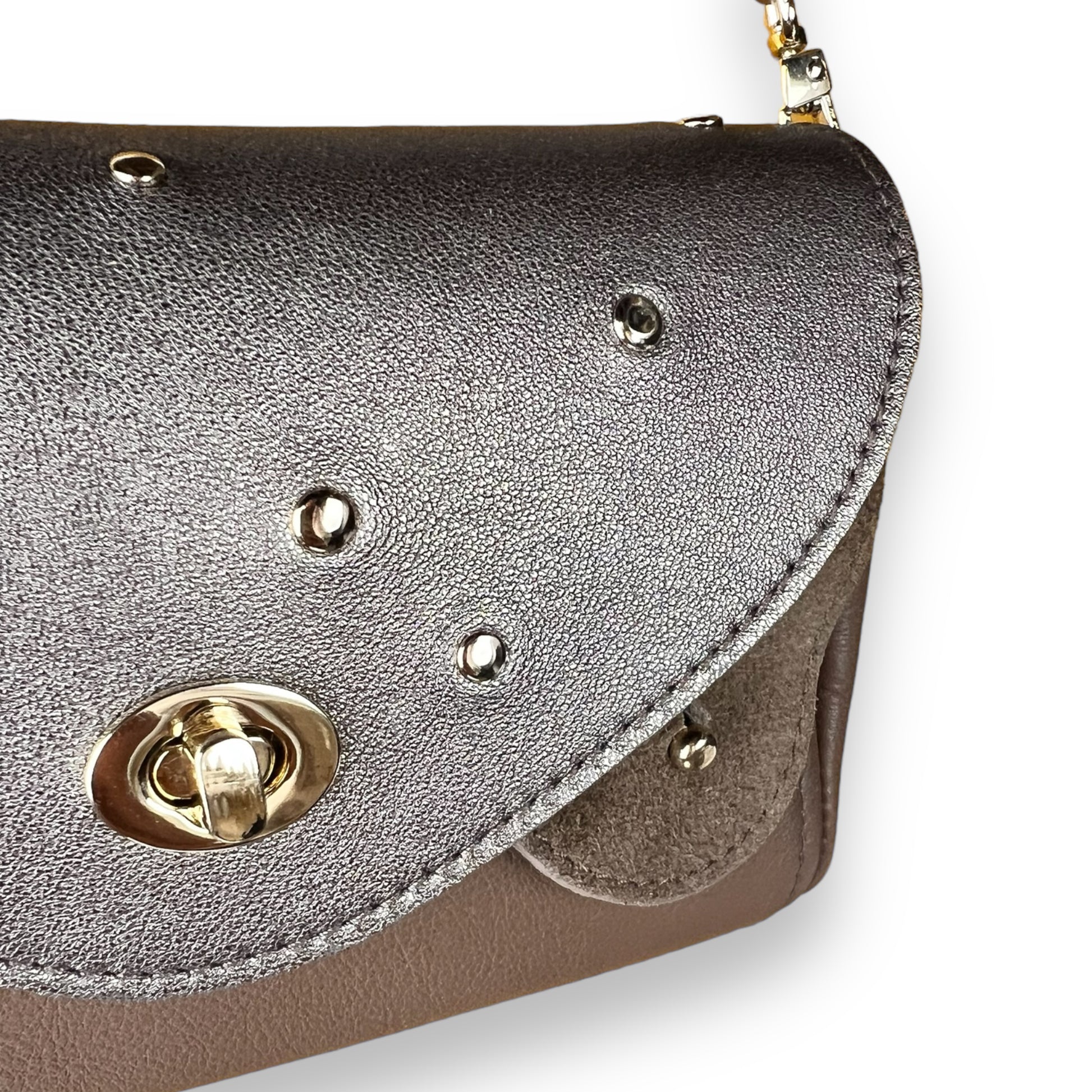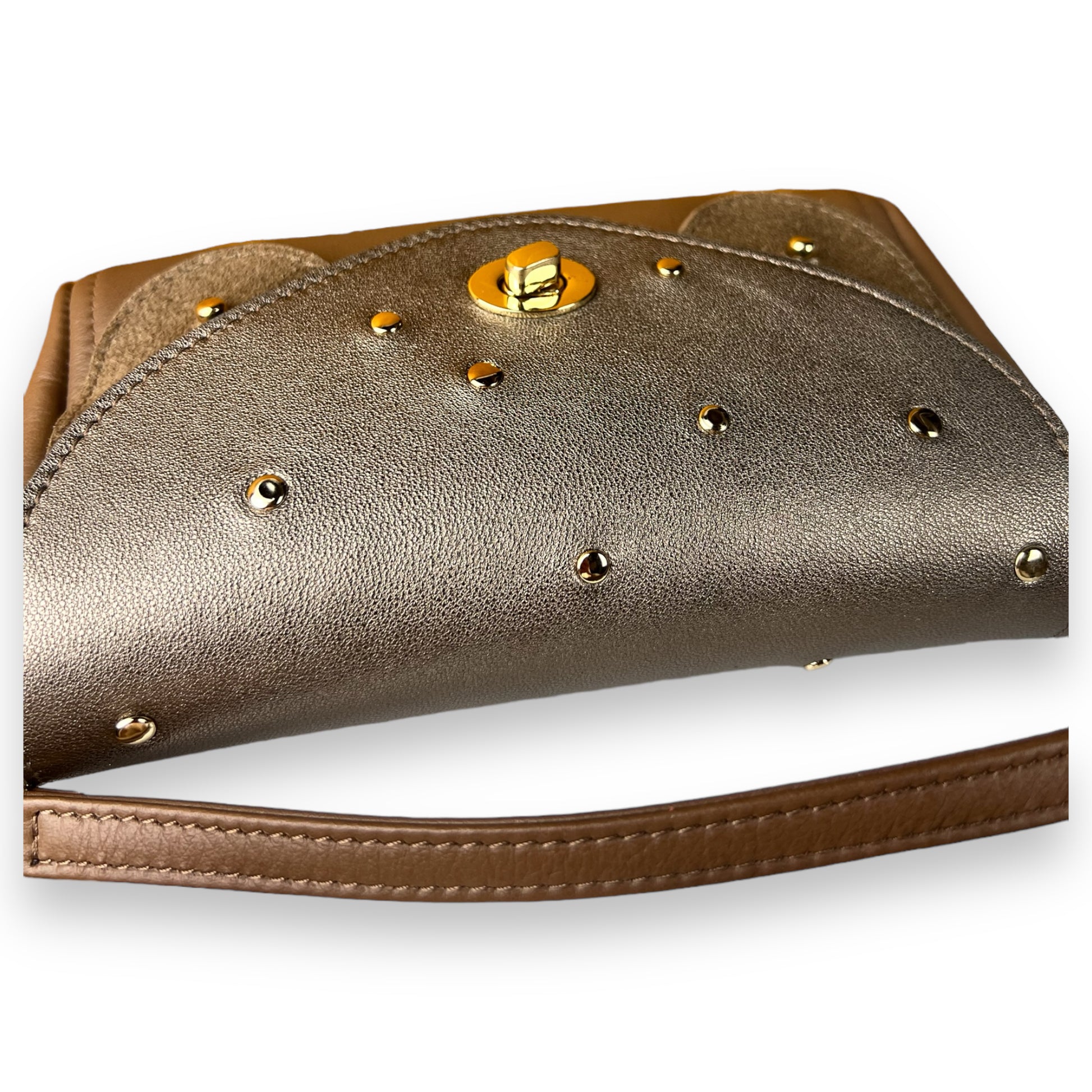 • Clous dorés clairs sur le rabats disposé aléatoirement