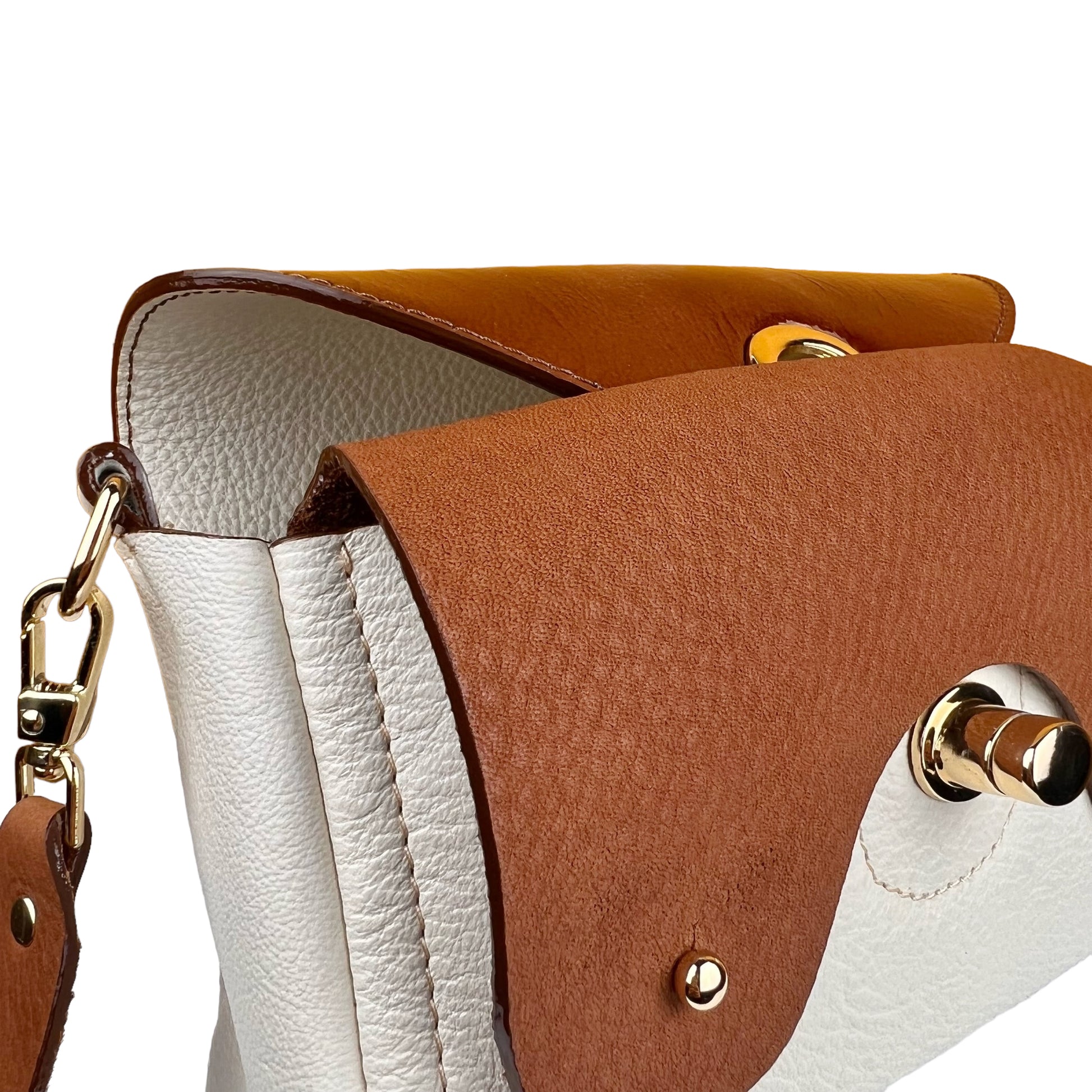 Réalisé artisanalement à l'atelier de Biarritz, le Bisou Bag Mini Tiramisu est une véritable gourmandise de par le mélange de ses matières et coloris.