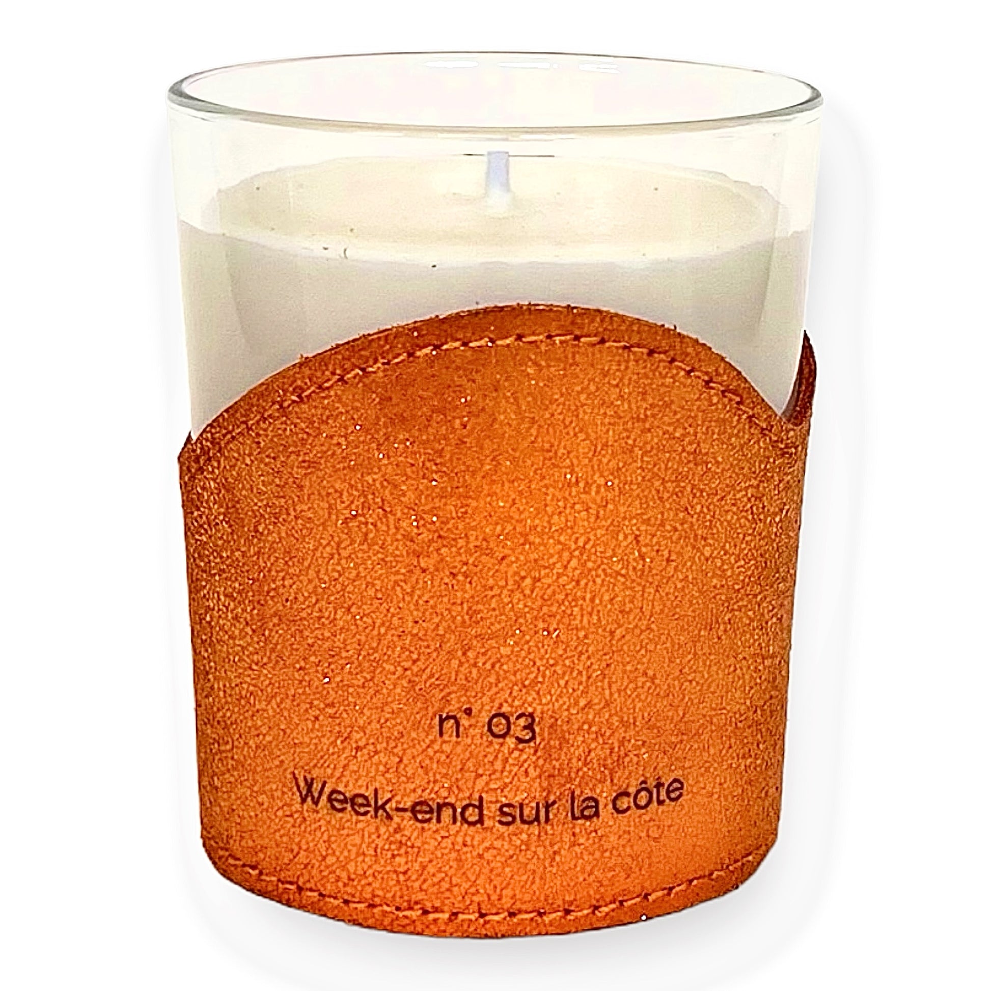 BOUGIE DANS SON ÉTUI DE CUIR RECHARGEABLE - N°03 WEEK-END SUR LA CÔTE