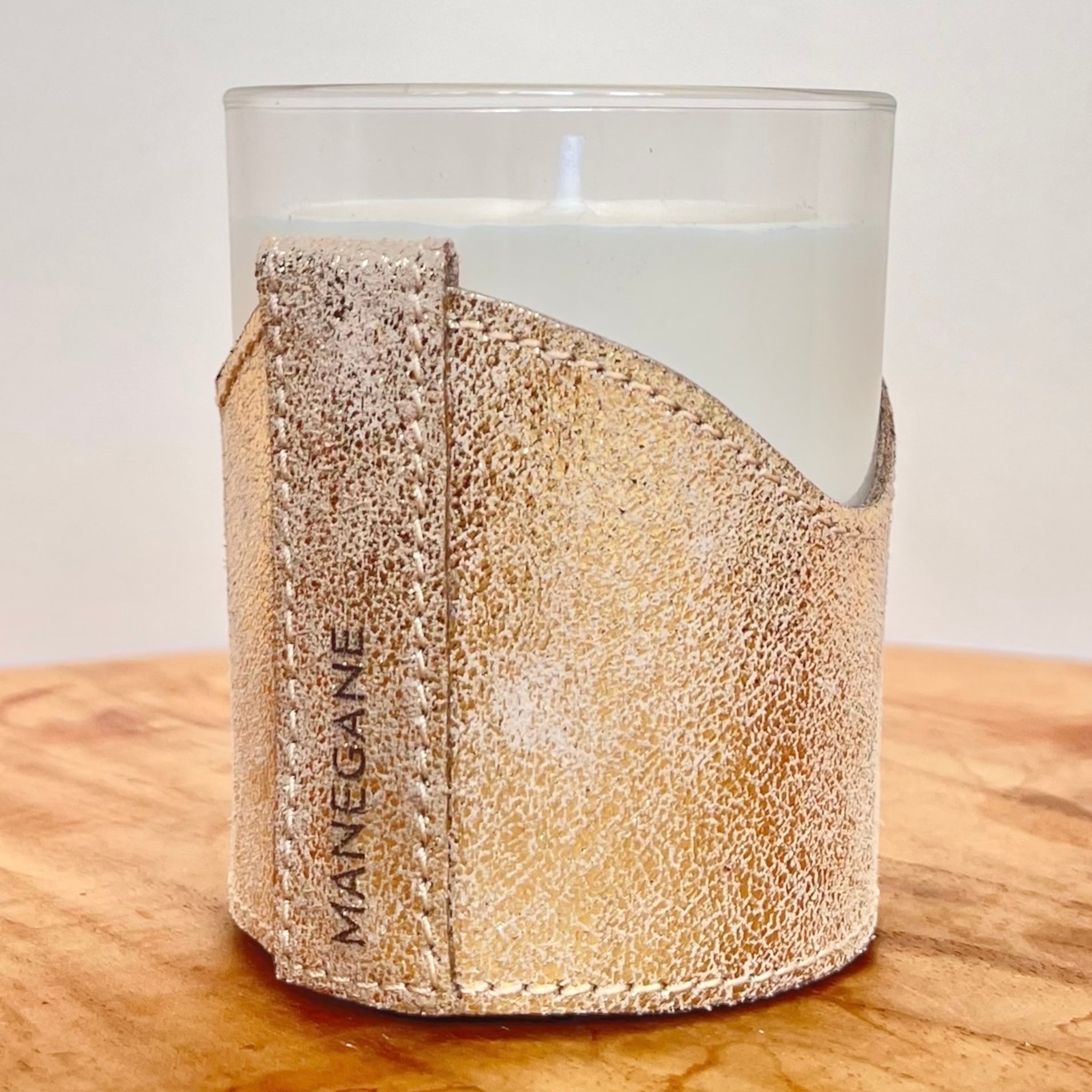 Basés en Nouvelle-Aquitaine, ces bougies sont le fruit de la collaboration entre un artisan cirier passionné qui perpétue la tradition de la fabrication de bougies à la casserole et le savoir-faire en maroquinerie de Manegane.