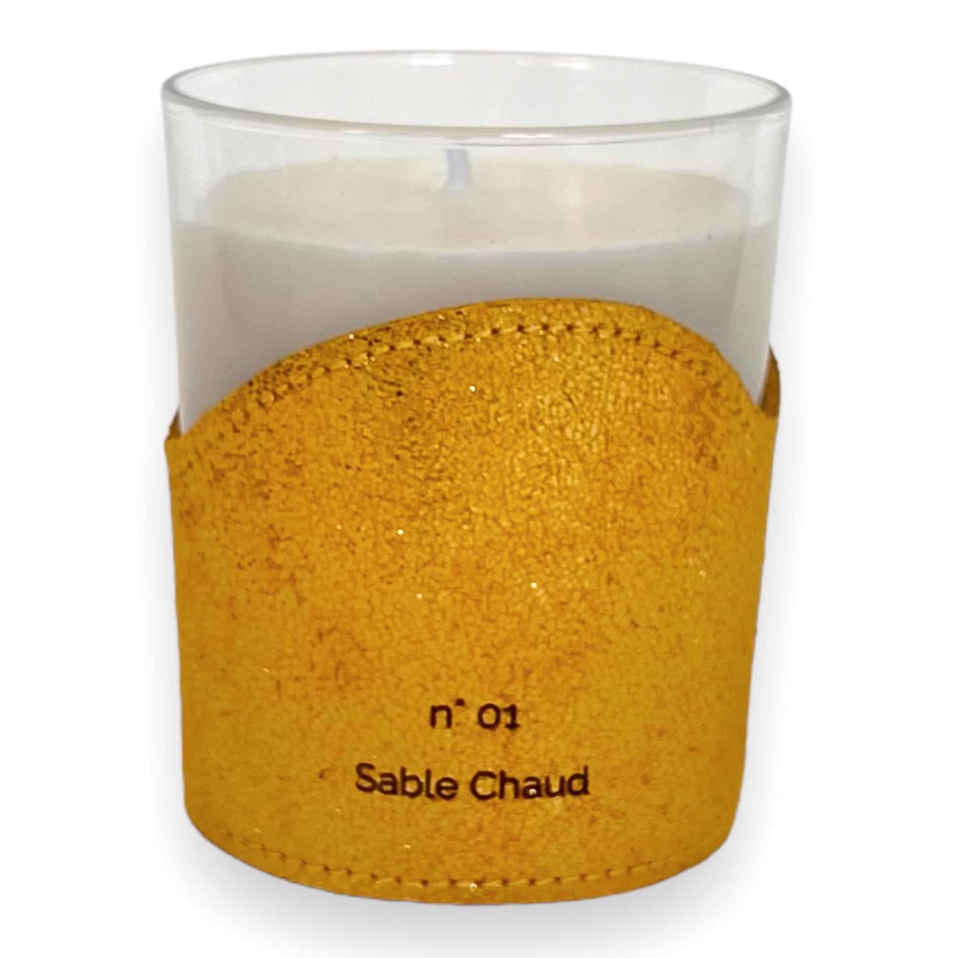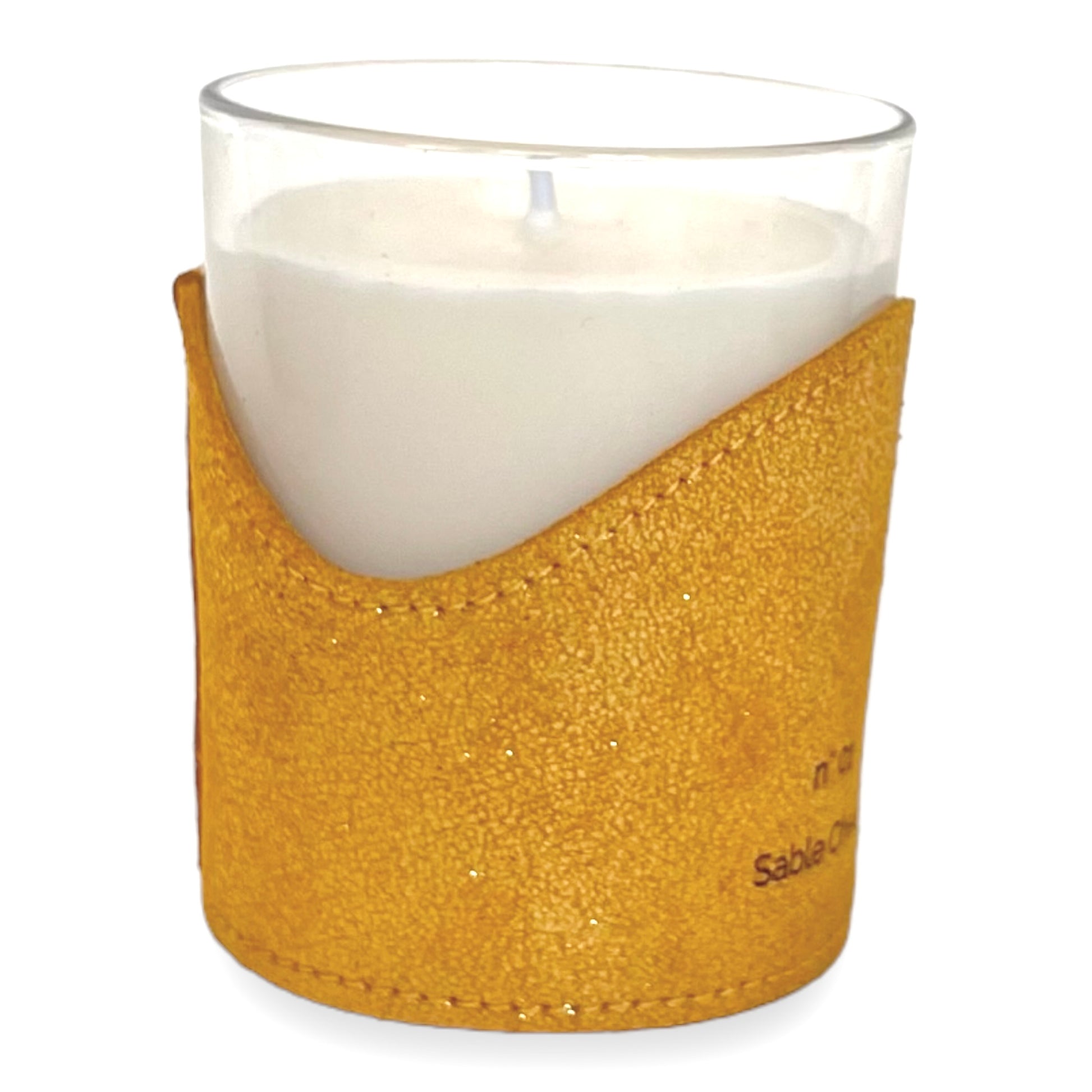 BOUGIE DANS SON ÉTUI DE CUIR Rechargeable - N°01 SABLE CHAUD