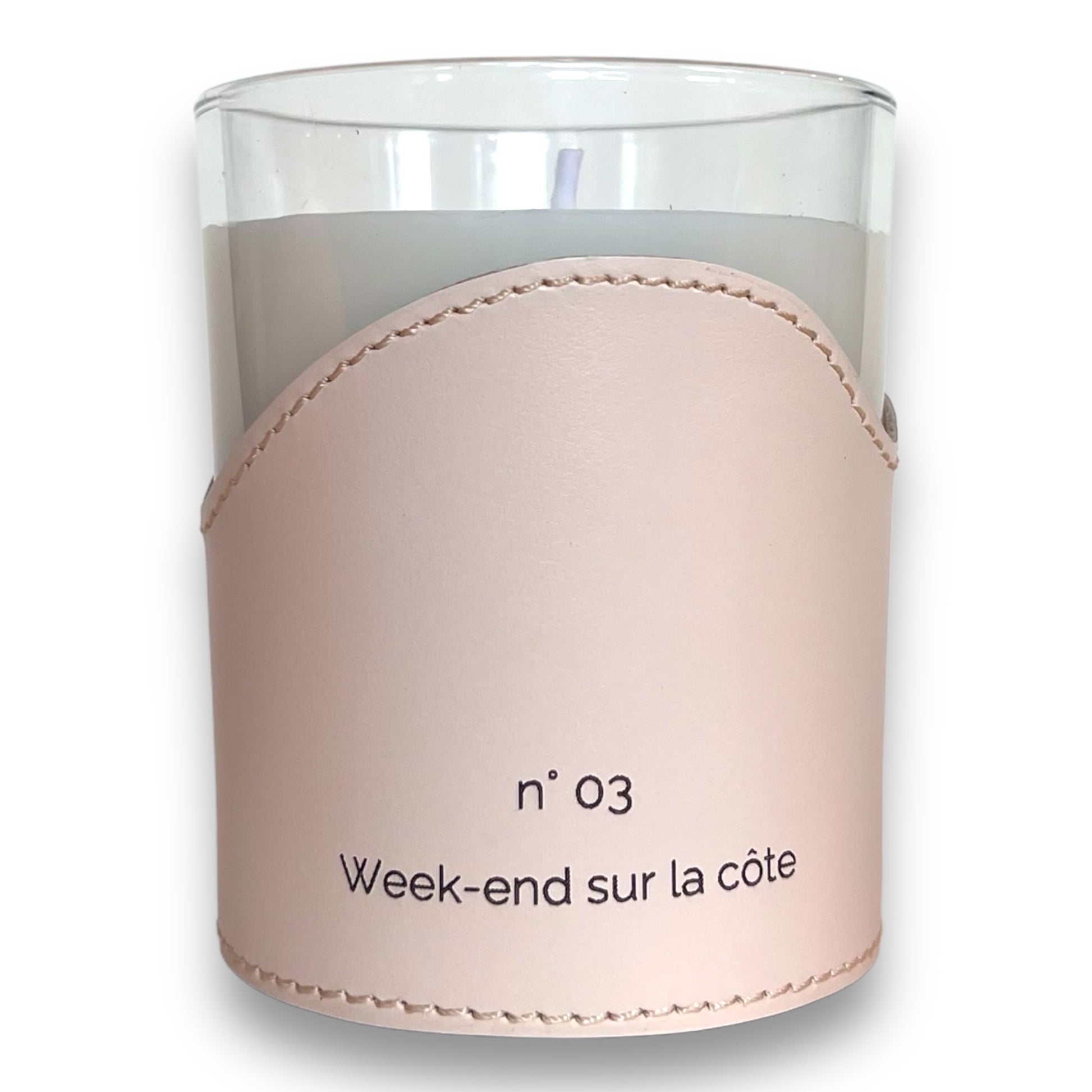BOUGIE DANS SON ÉTUI DE CUIR Rechargeable - N°03 WEEK-END SUR LA CÔTE