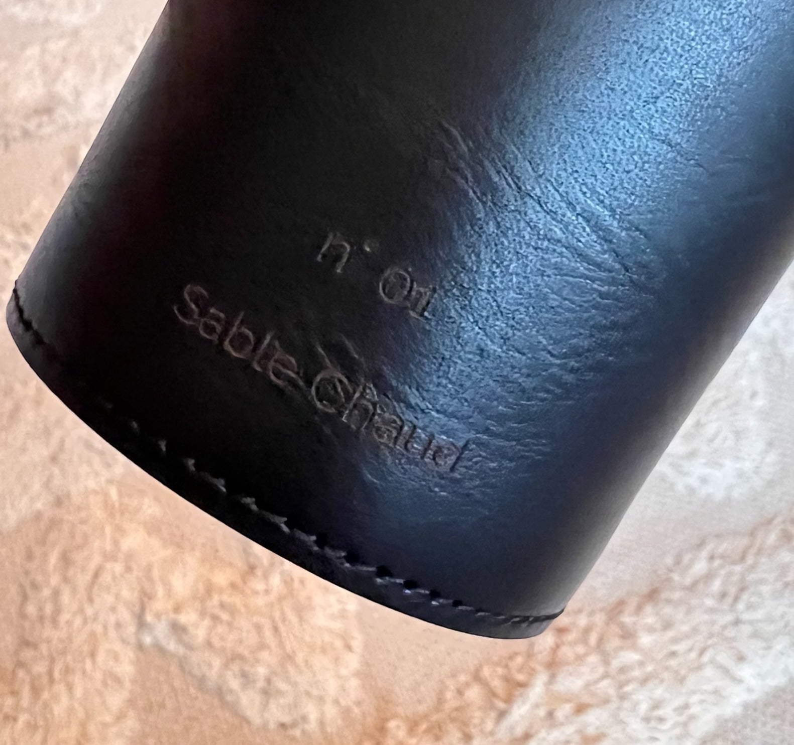 BOUGIE DANS SON ÉTUI DE CUIR Rechargeable - N°01 SABLE CHAUD