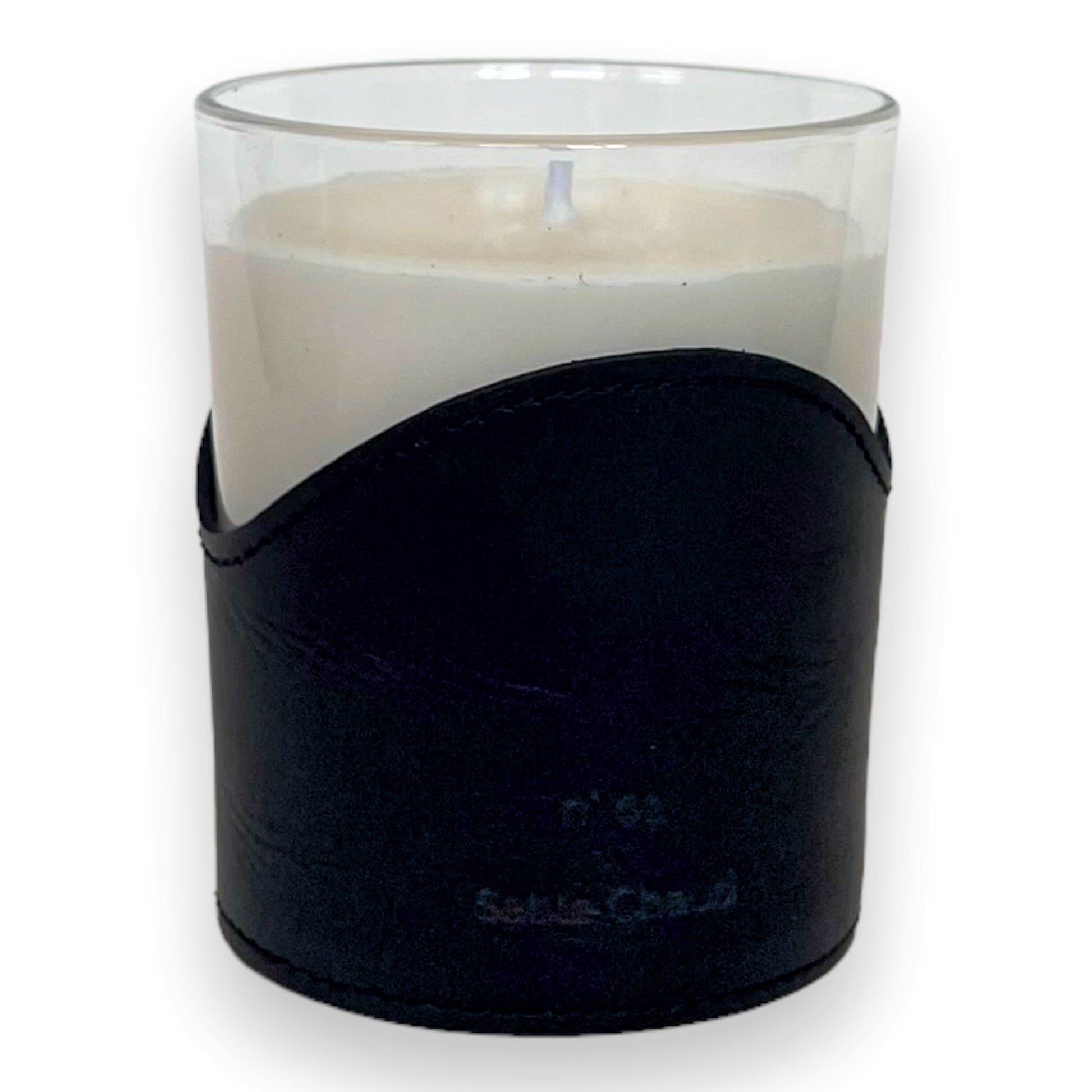 Bougie de 180 grammes. 47 heures de brûlage. Couleur du cuir noir, mat.