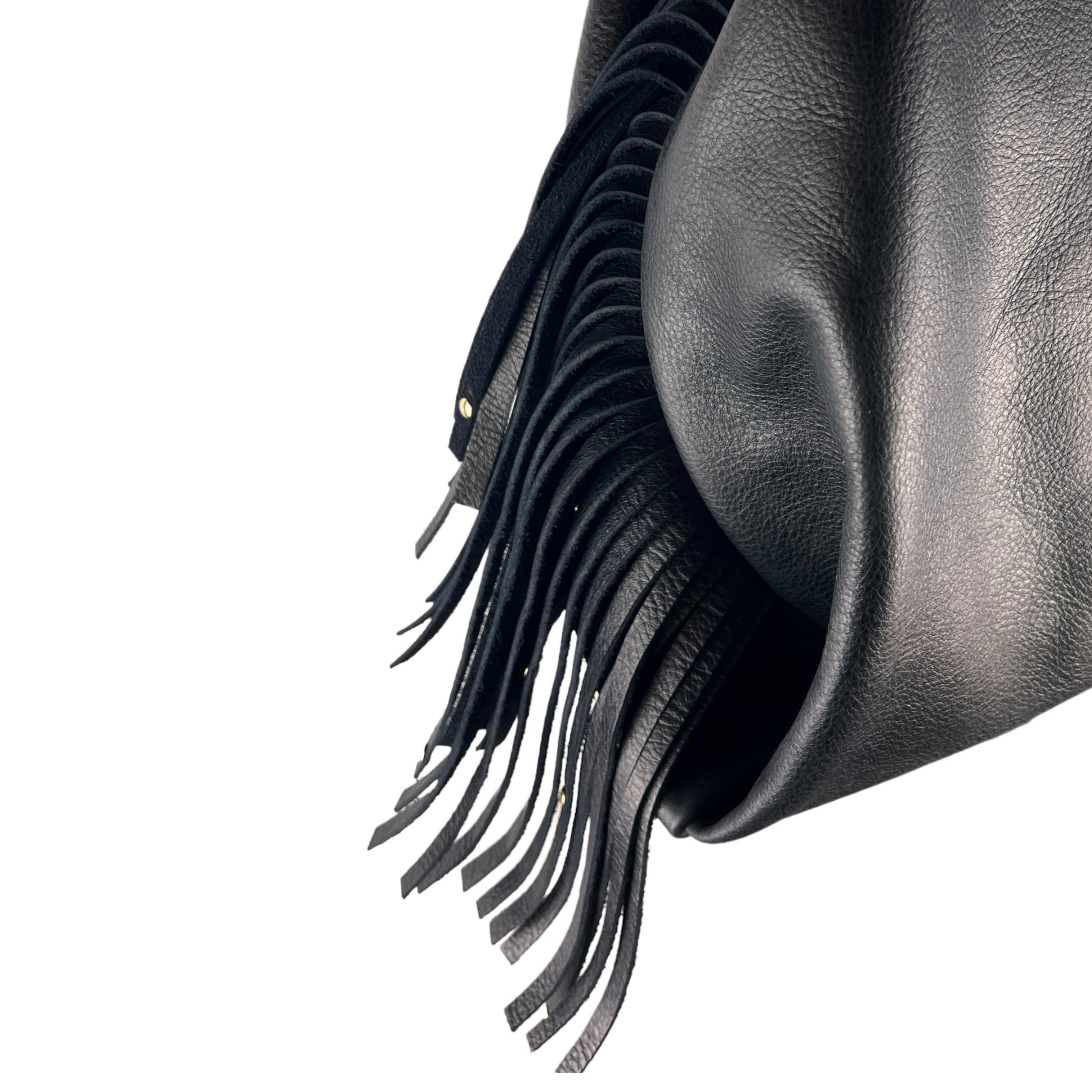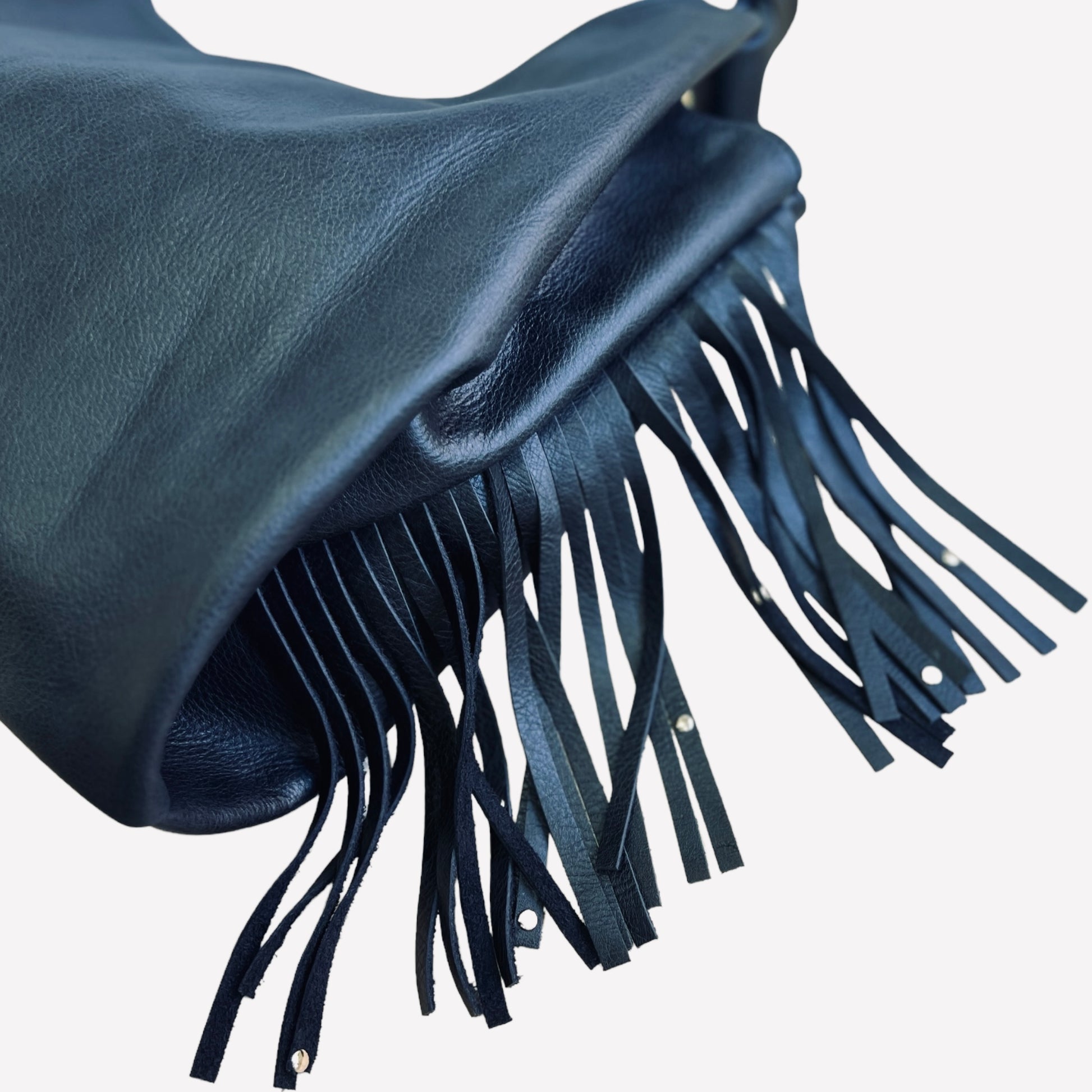 Ses franges noires avec ses quelques clous dorés clairs disposés aléatoirement et discrètement subliment parfaitement ce modèle pour une touche rock subtile.
