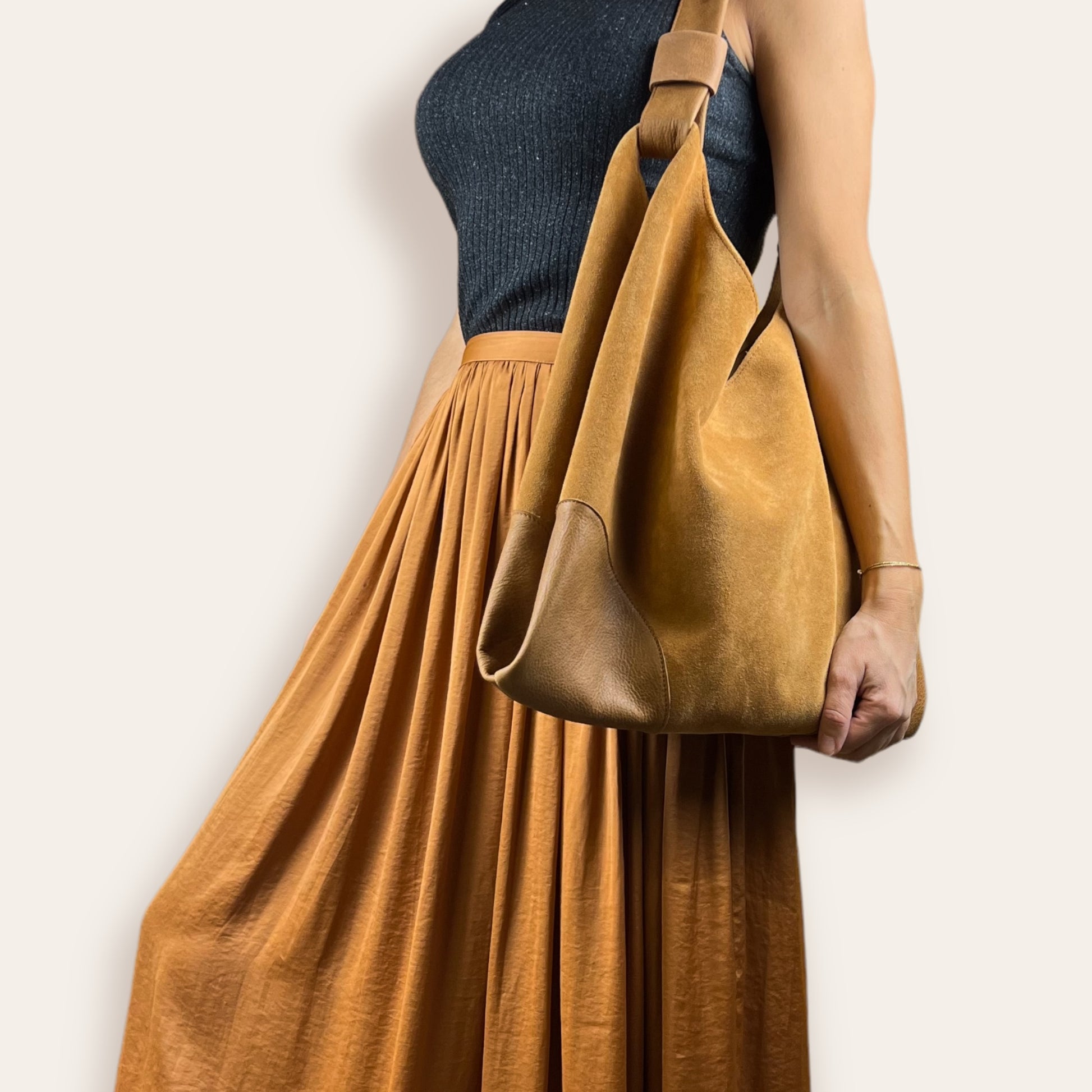 Conçu pour vous accompagner où que vous alliez ! C'est un grand sac souple, en cuir qui se drape sur votre épaule grâce à une large anse confortable.