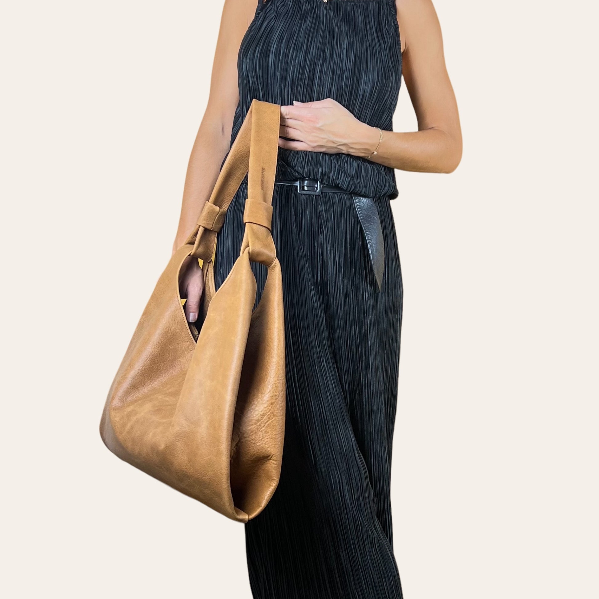 Conçu pour vous accompagner où que vous alliez ! C'est un grand sac souple, en cuir qui se drape sur votre épaule grâce à une large anse confortable.