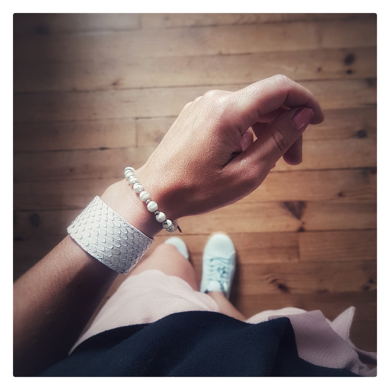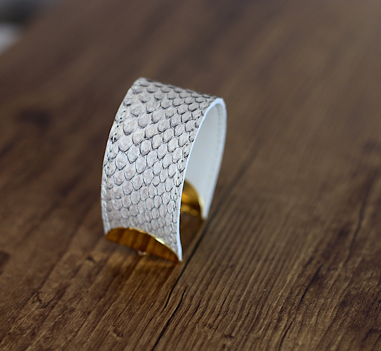 Succombez pour cette manchette en python blanc nacré; pièce unique, réalisée à la main dans l' atelier de Manegane.