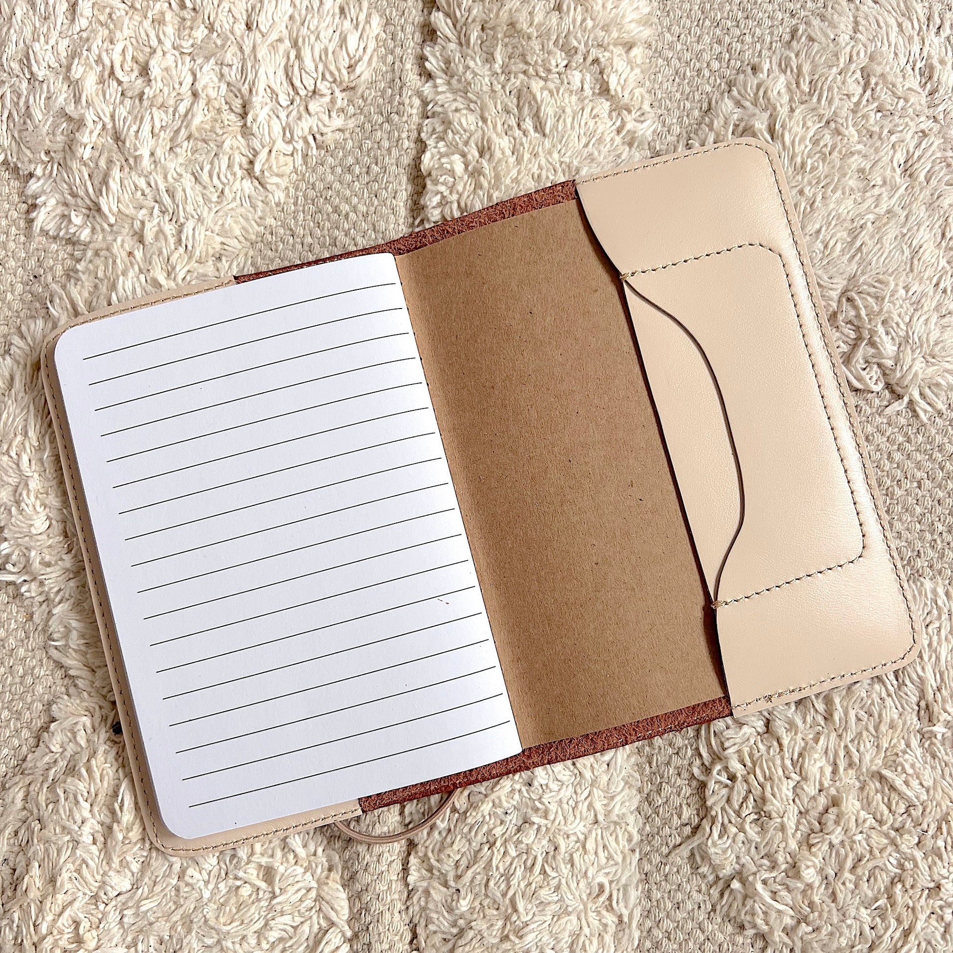 Carnet de naissance en cuir format A6, 60 feuilles lignées, rechargeable en carnets supplémentaires vendus sur l'eshop, pour suivre les années.