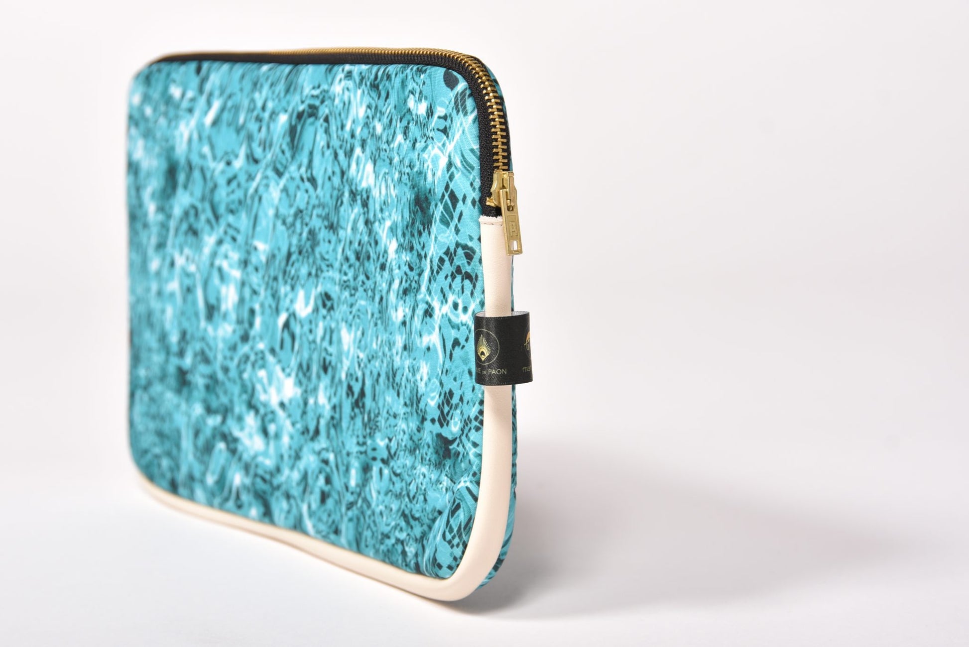 Son exclusivité est que toutes les pochettes sont doublées de mousse et de tissus éponge, un joli clin d'oeil qui rappelle clairement le bord de mer, lieu où nous vivons.