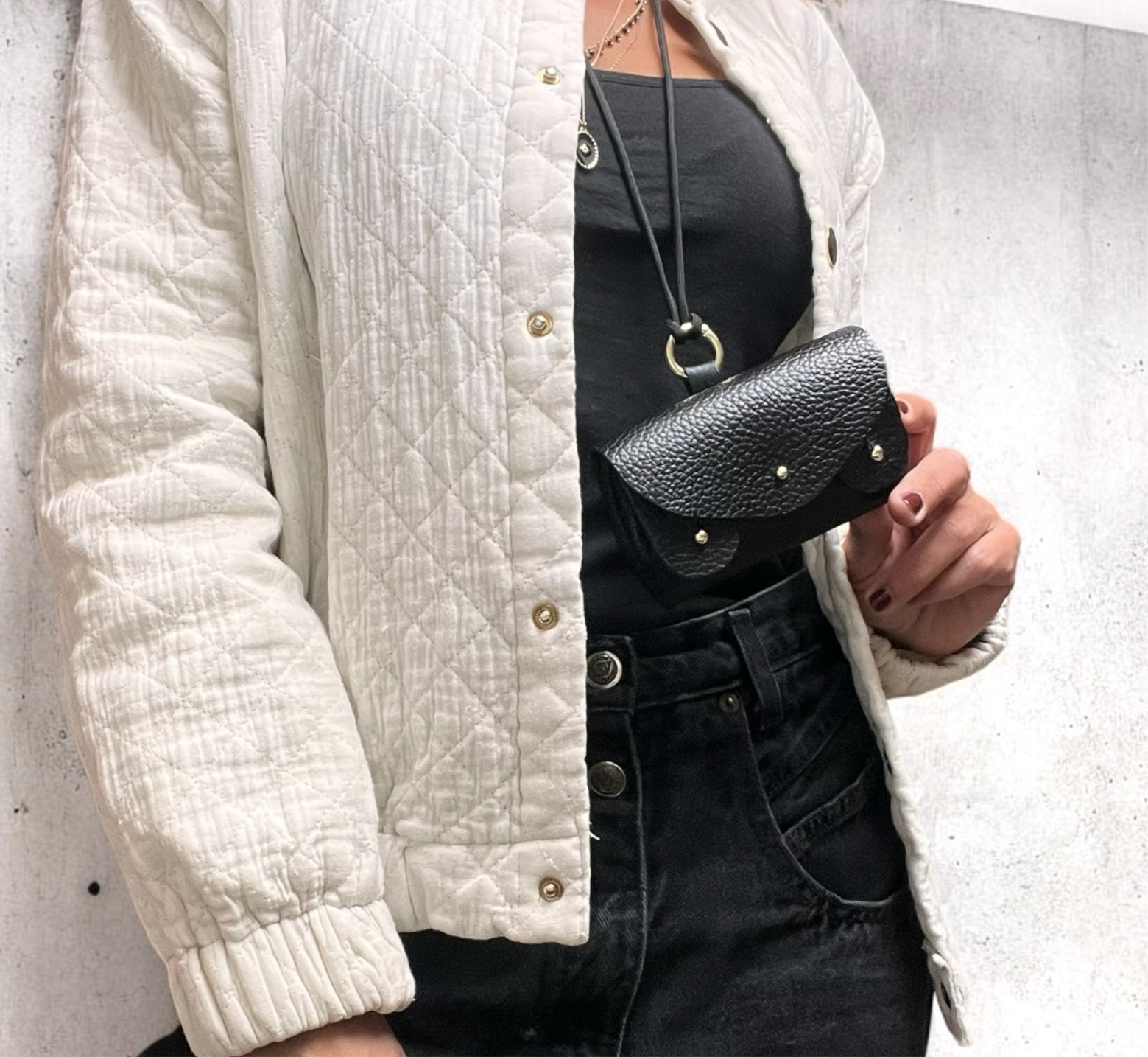 Ou bien portez-le comme un mini-sac en cuir avec un cordon coulissant.