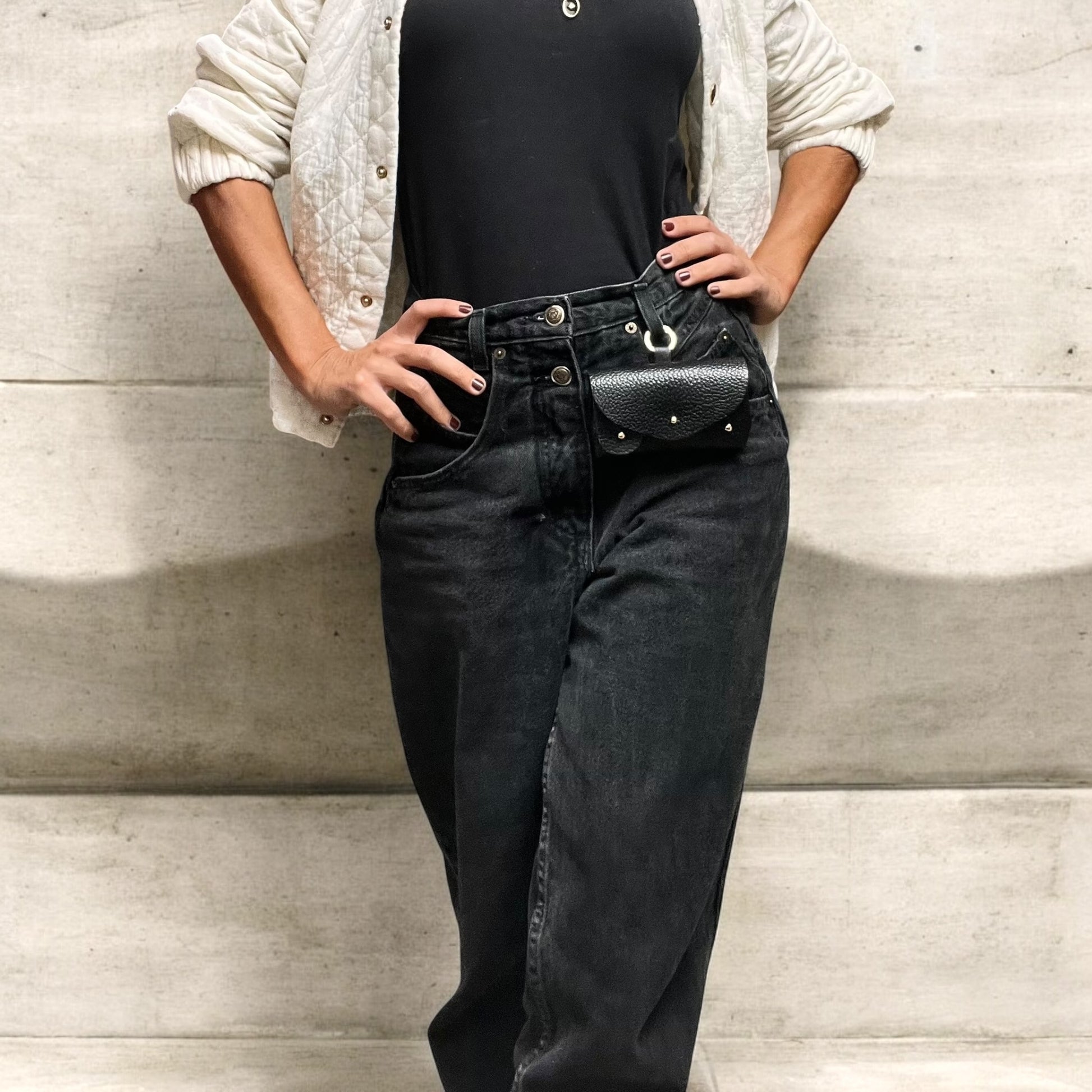 Ou bien portez-le comme un mini-sac en cuir avec un cordon coulissant.