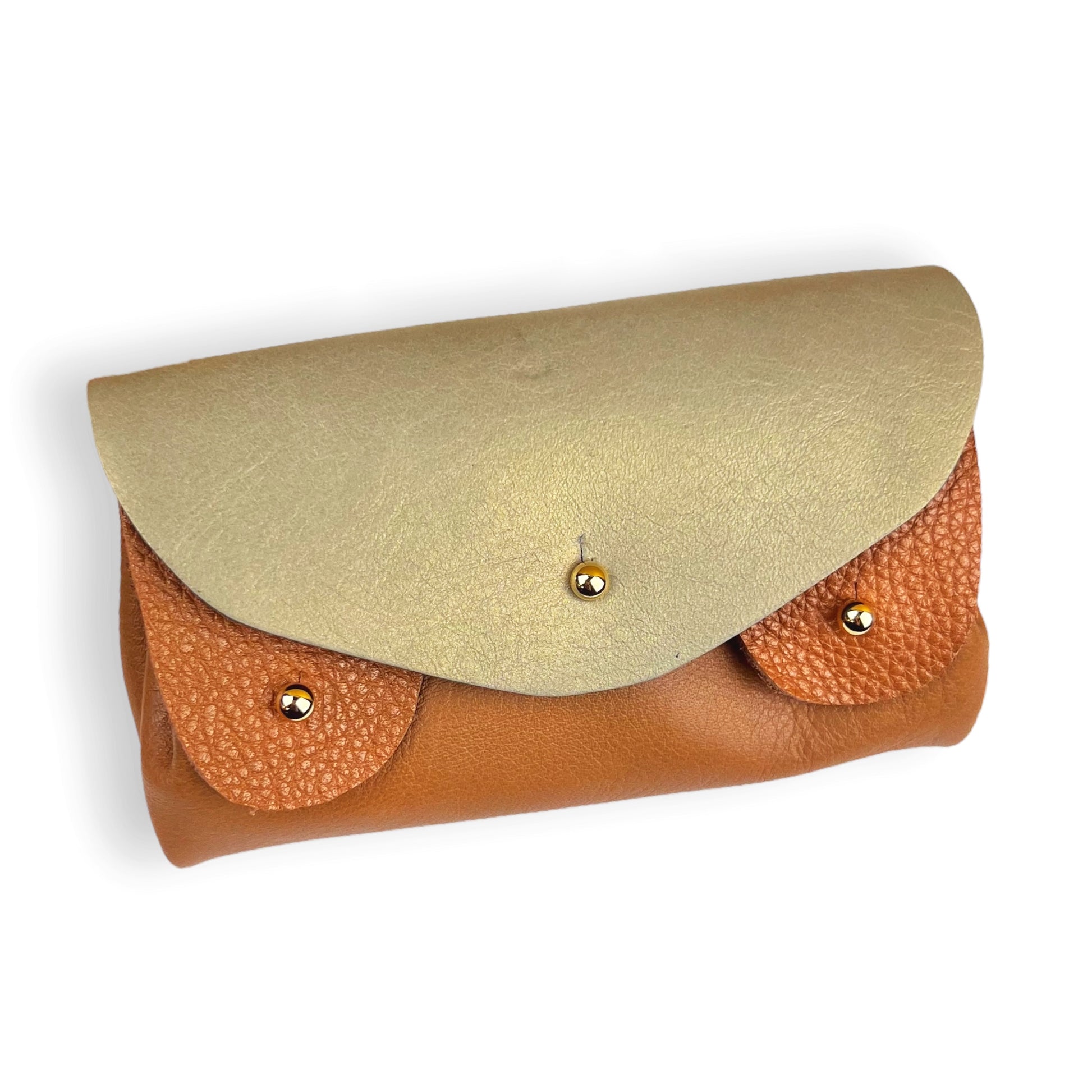 • Coloris beige reflets iridescents, cuir fauve, cuir caramel