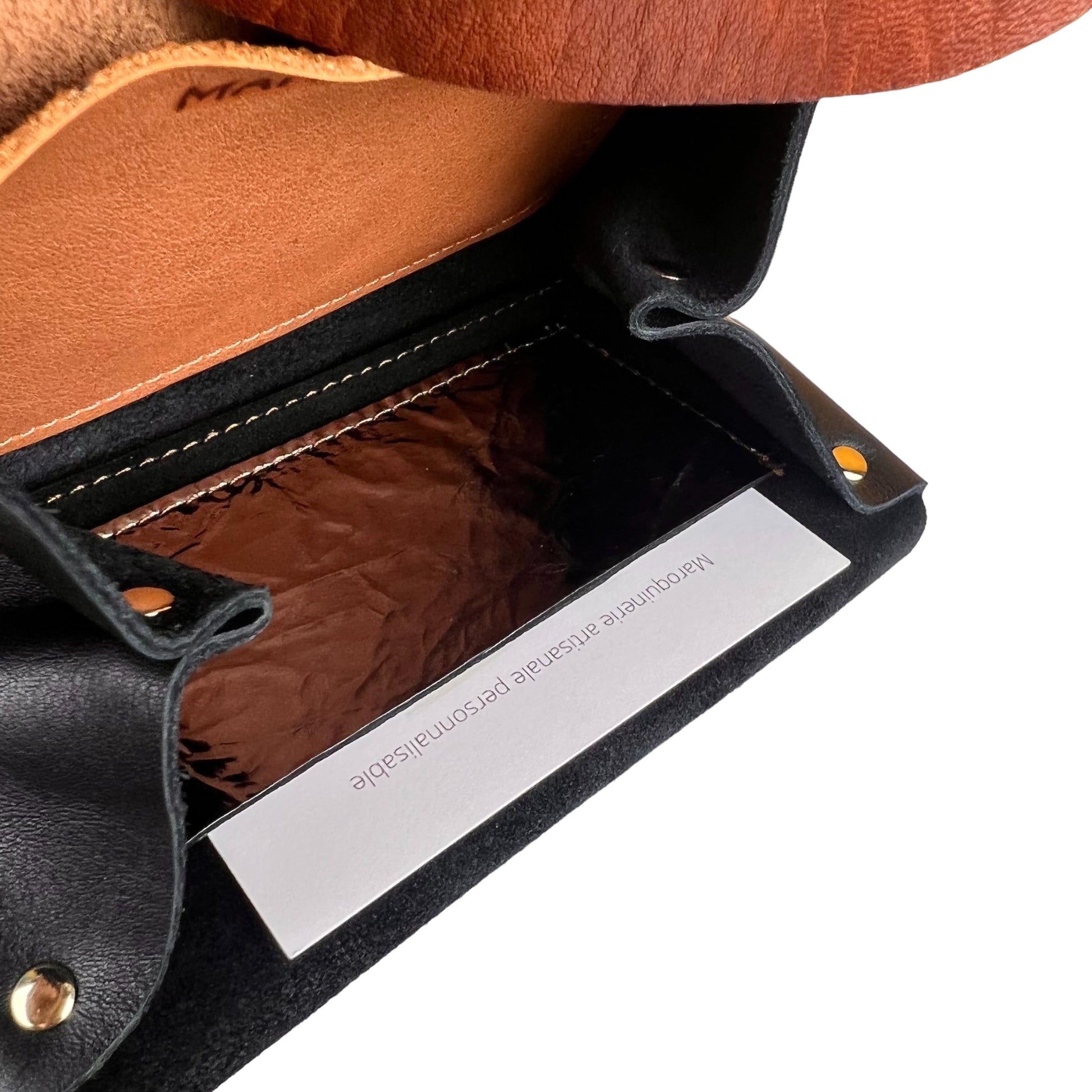 Pièce unique par ses assemblages de coloris et cuirs, personne n' aura le même.
