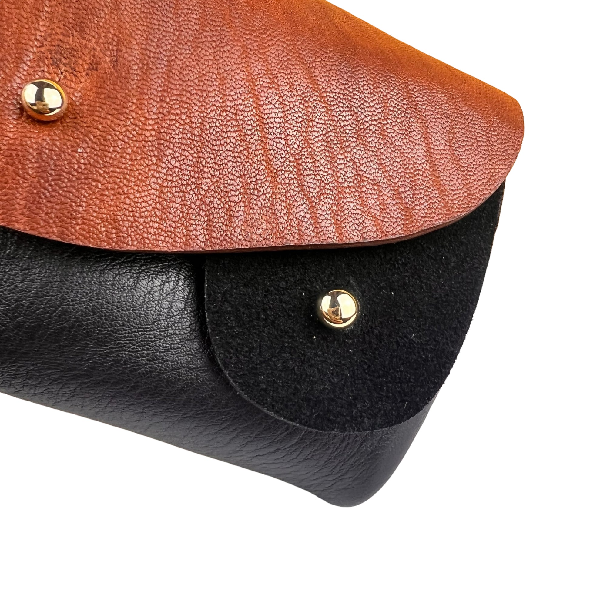 Portefeuille en cuir, trio de couleurs, teintes marron-noirs.